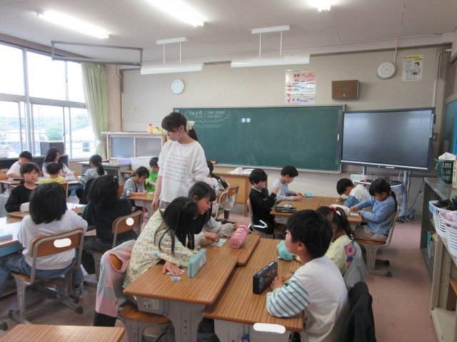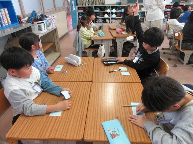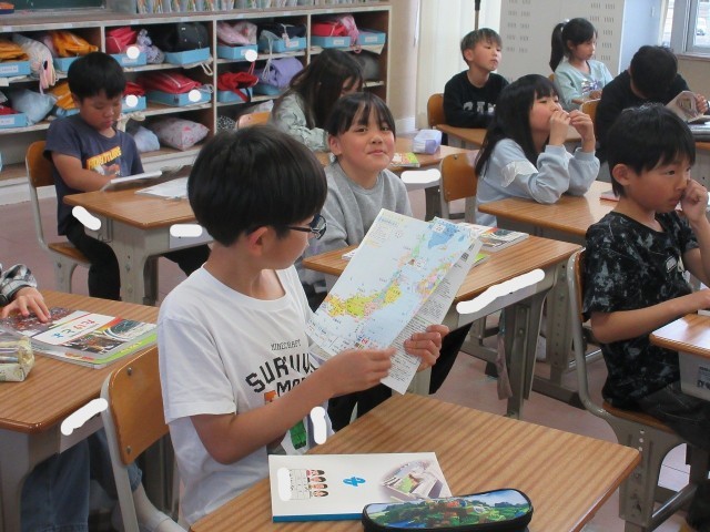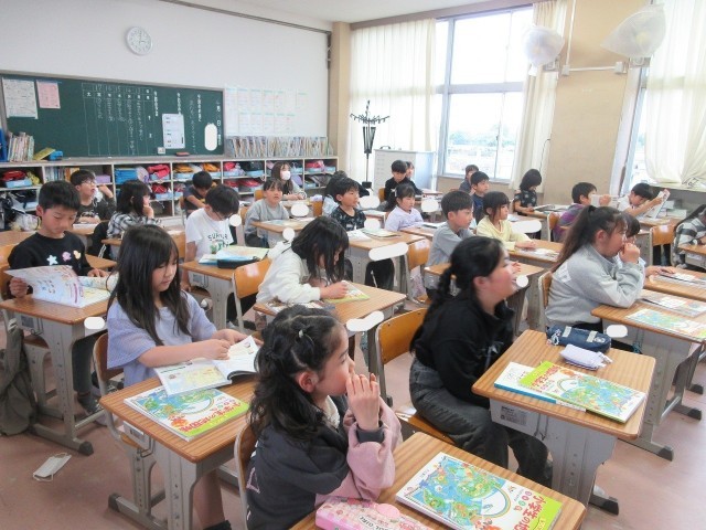 1組は、社会科の学習でした。今年度から始まった社会科の学習ですが、子どもたちは、地図帳や地域学習の資料集を嬉しそうに見ていました。2組は、学級目標を話し合っていました。