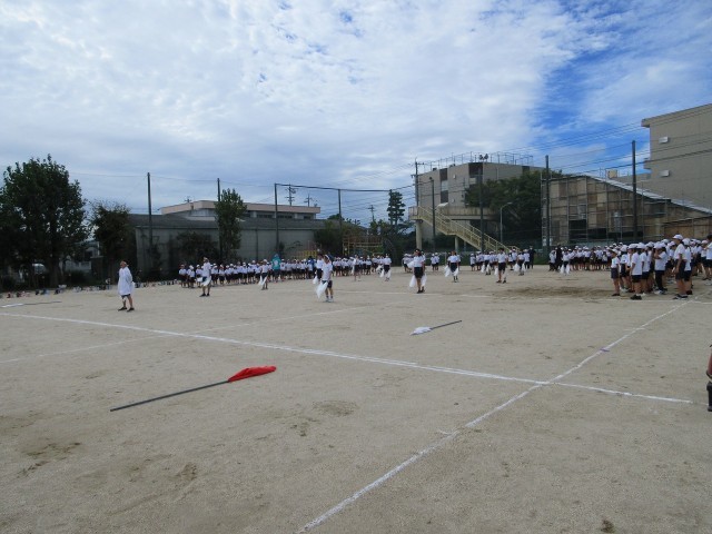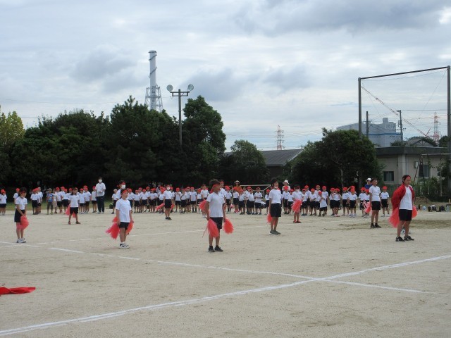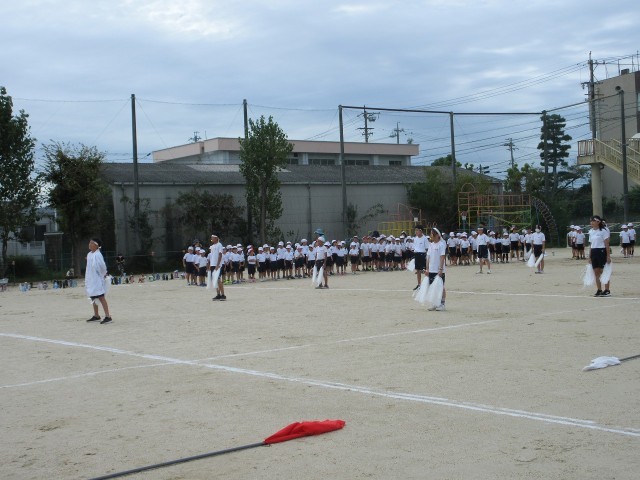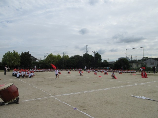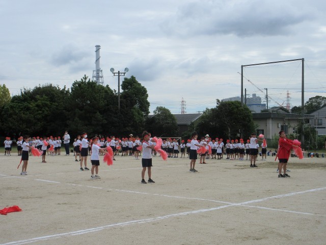 運動会総合練習の途中では、「応援合戦」の練習を行いました。