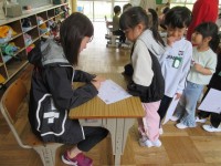 紙芝居形式を取り入れ,子どもたちに分かりやすく,興味を引くような工夫がされていました。おなかの中にいる赤ちゃんにおへそを通して栄養を補給するかの如く,ふきっ子に栄養を与えてくれました。