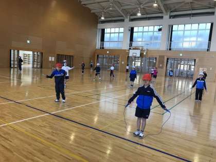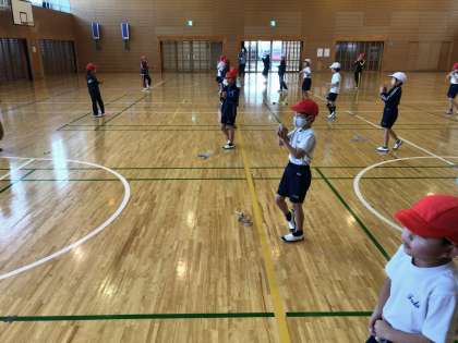 緊急事態宣言が発令されたため,学年で行う予定だったなわとび集会を,感染症対策をとりながら,学級別に行いました。どの子も一生懸命にとびました。