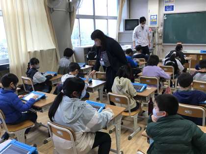 タブレット端末の有効活用について,ICT支援員の協力を得て,学習していました。