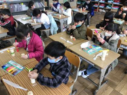 自分のイメージカラーで着色したり顔を表現したり,楽しそうに作品づくりをしていました。