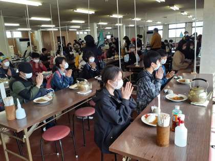 黙食、前向きでカツカレーをいただきました。感染症対策もしっかり取られていました。