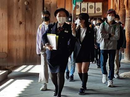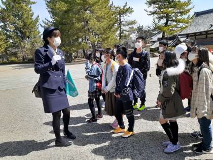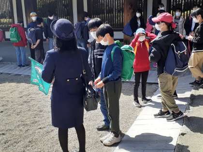 ガイドさんの説明を聞き、事前学習を確かめていました。