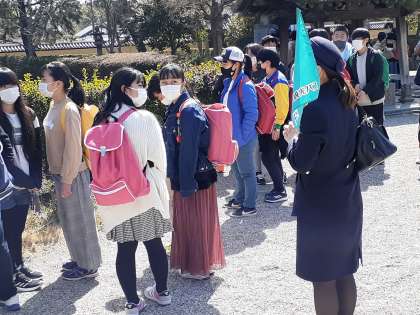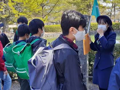 学級ごとにガイドさんの説明をしっかり聞いていました。