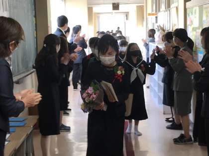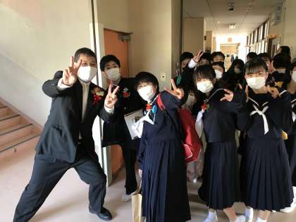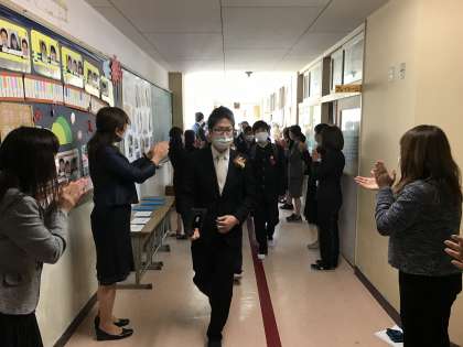 在校生が参加できない分,校舎内で職員が卒業生を見送りました。