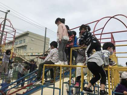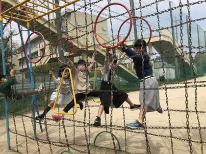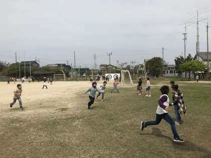 広い運動場で遊ぶのは,とても楽しそうです!