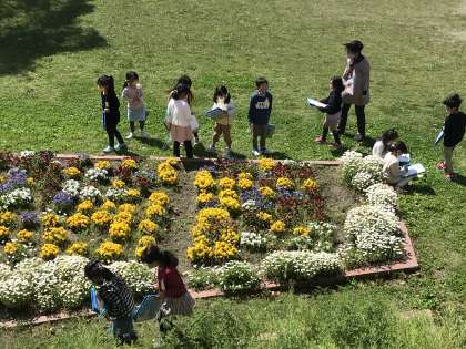 1年生が前庭でスケッチをしていました。温かくて気持ちよさそうでした。