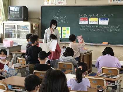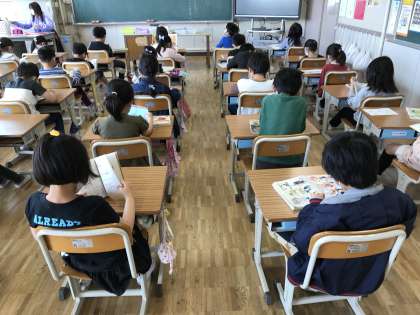 静かに読書をしたり学年・学級目標を示したりしていました。