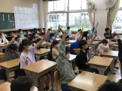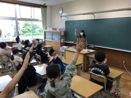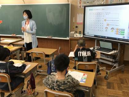 外国語と算数の授業が行われていました。積極的に挙手する姿が輝いていました。