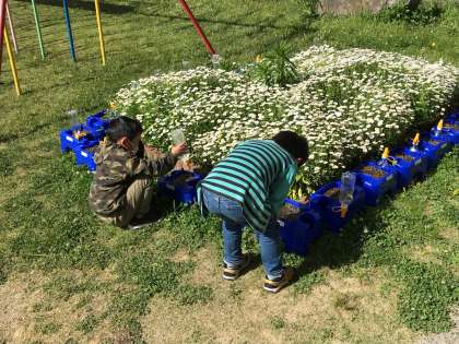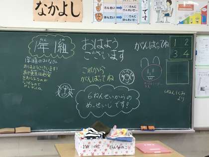 6年生からのメッセージが1年生を出迎えていたり,あさがおに水をやったりしていました。