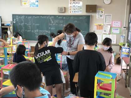 漢字プリントに集中して取り組む姿が光っていました。また,作品作りを楽しんだり,見学者に活躍の場を作りながら記録測定をしたりしていました。