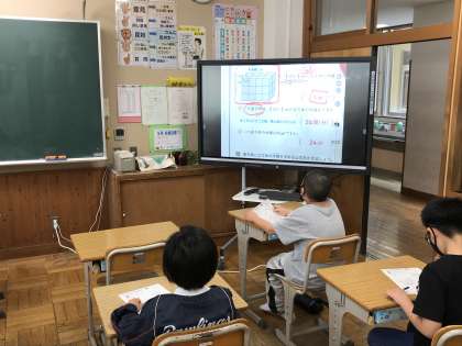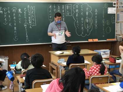 教科分担制による授業が行われていました。担任の先生以外の授業にも随分と慣れてきた様子がうかがえます。