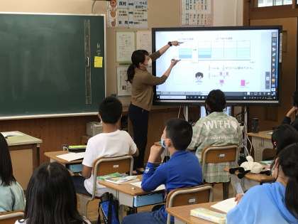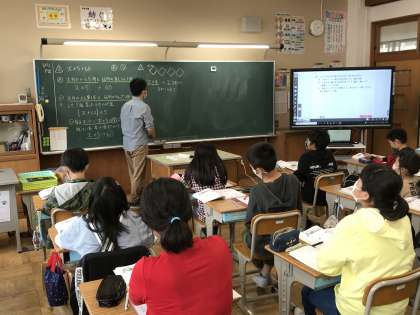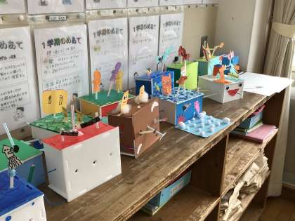 算数の学習に取り組んでいました。ロッカー上には,くるくるクランクの作品が展示されていました。