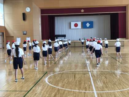 体育の授業の様子です。1・2組ともに元気いっぱいでした。