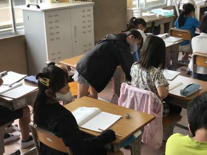 理科の授業が行われていました。分からないところは,近くの児童で教え合っていました。微笑ましい光景でした。