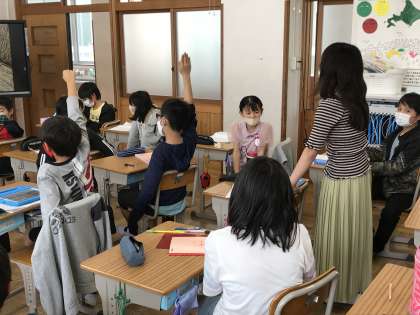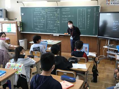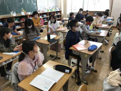 教科分担制により野崎先生の国語の授業でした。仲間の意見を聞いて考えを広げ,深めていました。