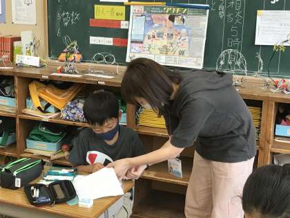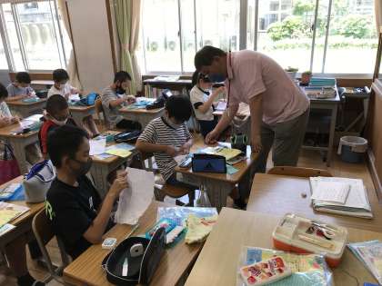 家庭科の授業が行われていました。裁縫の練習を行っていました。SAの佐々木先生も個別のサポートをしてくれています。