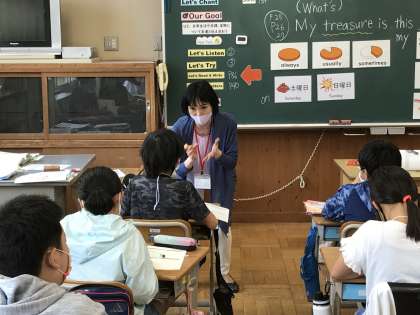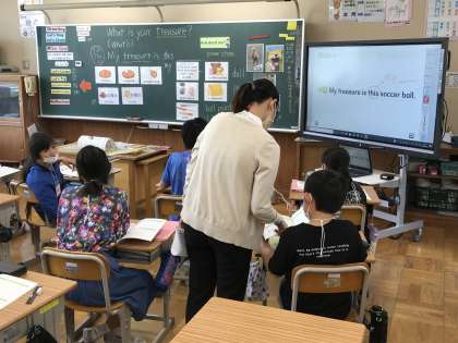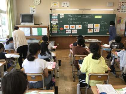 外国語の授業が行われていました。私の宝物について表現を学んでいました。