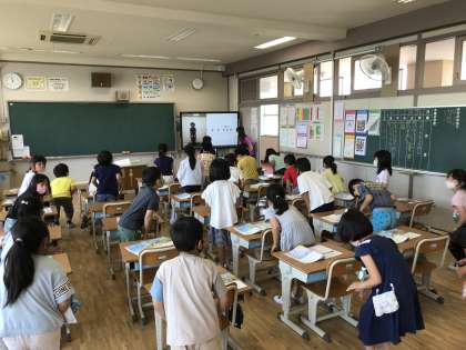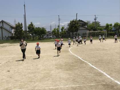 グラウンドでランニングしたり,教室で画像を見ながらリズムをとったりしていました。