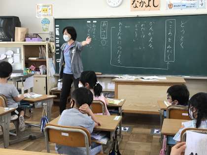 道徳科の授業が行われていました。挨拶について意見交流していました。