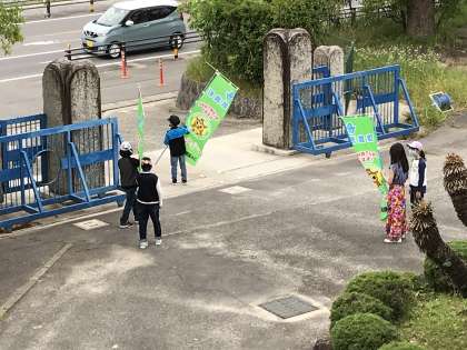 生活委員会による挨拶運動が行われていました。気持ちのよいあいさつで,一日をスタートしています。