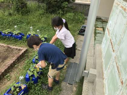 水やりも一日の大事な仕事です。あいさつ運動が展開されていますが,道徳科での学びを生活の中に生かしていきましょう。