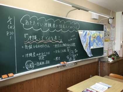社会科の学習に取り組んでいました。タブレット端末を活用し,沖縄県について調べていました。
