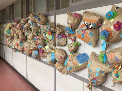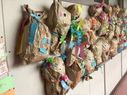 廊下の掲示板に子どもたちの作品が飾ってあります。