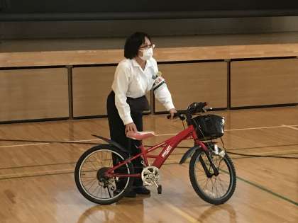 正しい自転車の乗り方について確認していました。交通指導員の方々,連日ありがとうございます。