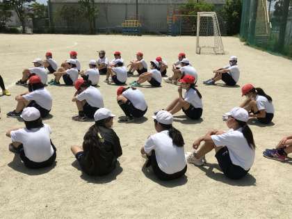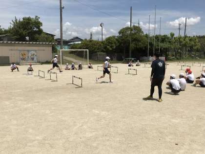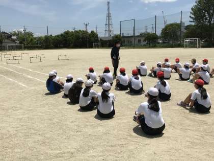 ハードル走について,学習していました。リズムよく走り越えるお手本を見て,イメージを膨らませていました。