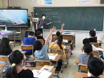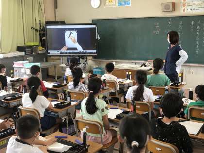算数で大きな数字を学習したり書写の動画を見ながら筆順等を確認したりしていました。