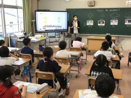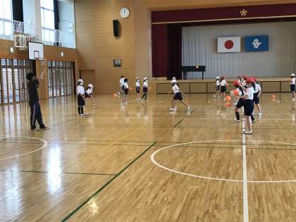 体育の授業でボール運動をしたり,ALTのクリスティーナ先生とコミュニケーションを図ったりしていました。