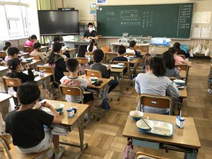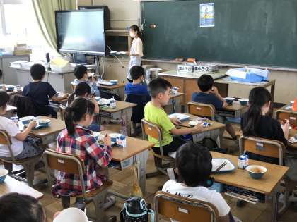 前向き給食が定着しています。暑い中ですが,エアコンがあるため,食事も食べやすい生活環境です。