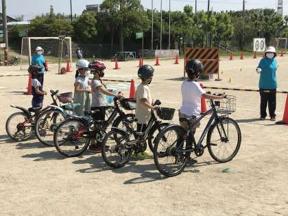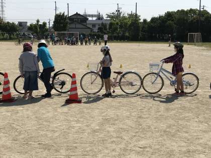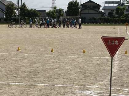 グラウンドを活用して,自転車の乗り方,ルールを確認していました。