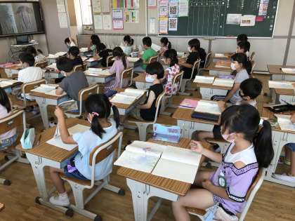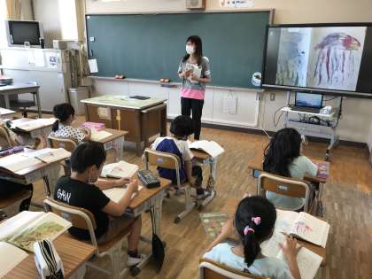 国語科スイミーについて,海の色の変化からイメージを膨らませていました。