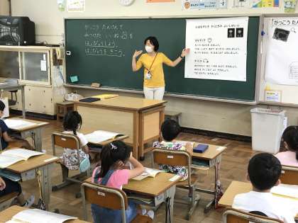 ひらがなの学習や体育,学校探検の発表について取り組んでいる様子が見られました。
