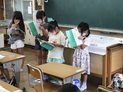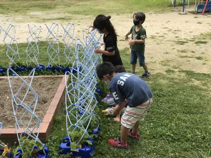音楽かたつむりを表現したり,水やりや朗読する姿が見られました。