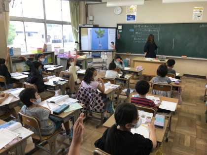 ホウセンカのつくりについて,自分の気づきを発表したり,国語科「まいごのかぎ」の場面における主人公の気持ちを考えたりしていました。