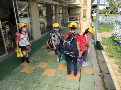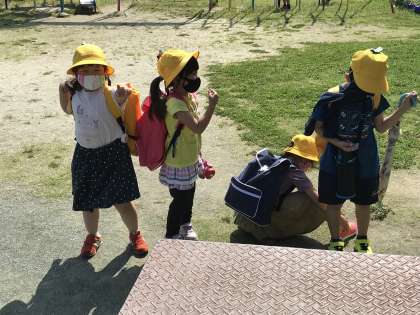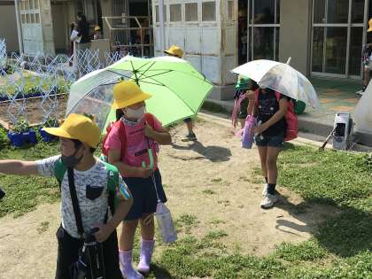 日差しが戻り,暑い中ですが,元気に下校していきました。傘を日傘代わりに活用するなど,工夫して熱中症対策を取っていました。