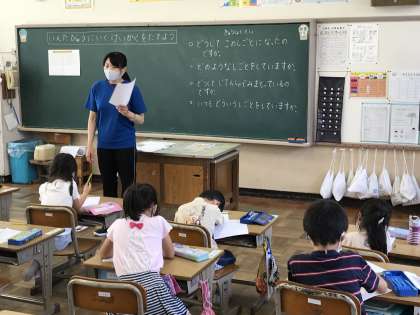 ボール運動をしたりインタビューの確認をしたりする姿が見られました。