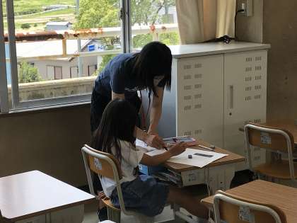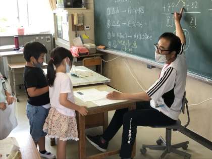 算数の計算問題に取り組んでいました。少人数指導の池田先生と担任で個別に確認していました。