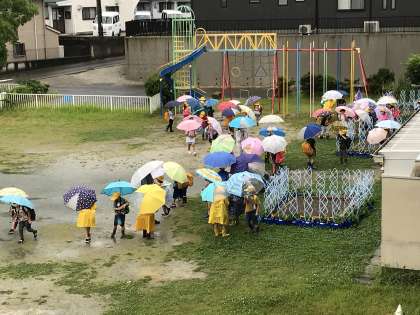 悪天候の中,元気に下校していきました。また明日,元気な顔で会いましょう。