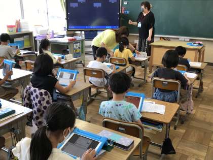 オリジナルTシャツ作りや1めもりの大きさに気をつけて数字を読み取ったり,電子黒板を使って意見交流したりしていました。
