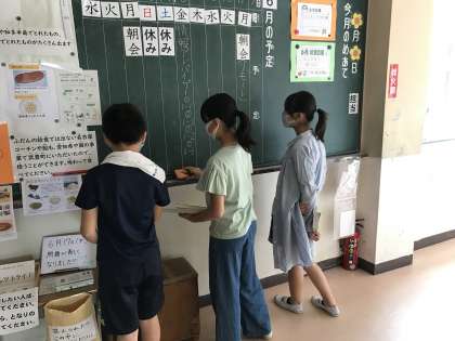 福祉広報委員会の児童が週予定の黒板を書き換えてくれていました。ありがとう!