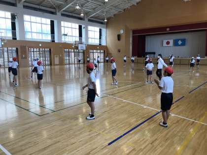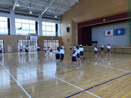 体育のボール運動に取り組んでいました。元気に動き回り,いい汗をかいていました。
