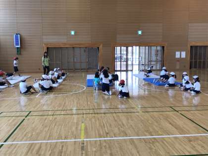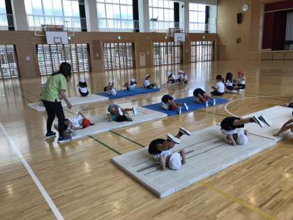 マットを使った運動遊びに取り組んでいました。手のつき方を繰り返し確認していました。