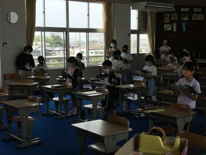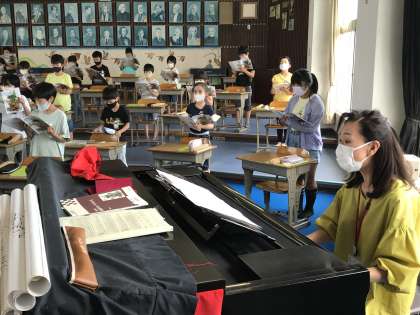 音楽の授業が行われていました。間隔を空けるなど,感染症対策をして短時間でありますあ,少しずつ歌声も戻ってきました。