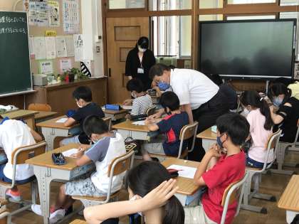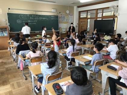 栄養教諭の宮本先生とのコラボ授業が行われていました。調理の目的と手順について,学習していました。