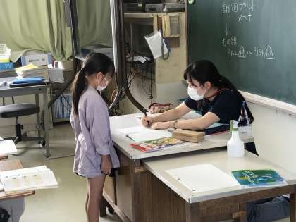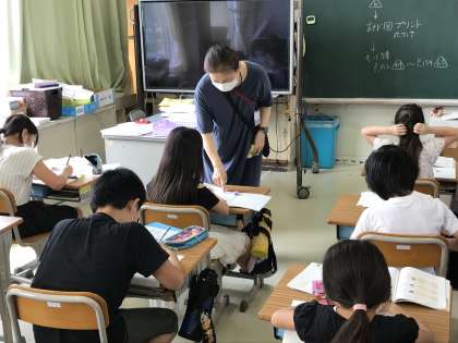 算数の計算問題に取り組んでいました。担任の先生は,SAの中川先生とともに個別対応も丁寧に行っている様子が見られました。